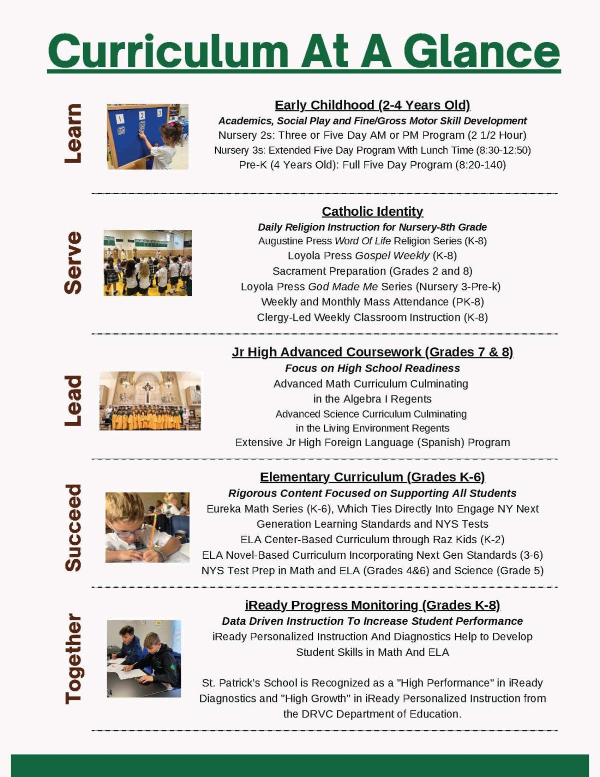 St. Patrick’s School follows the NYS Next Generation Learning Standards in conjunction with Diocesan curriculum guidelines. We have adapted the Engage NY modules to be integrated with our curriculum to meet our high academic standards and the Catholic Identity, which makes St. Patrick’s alumni so successful.
