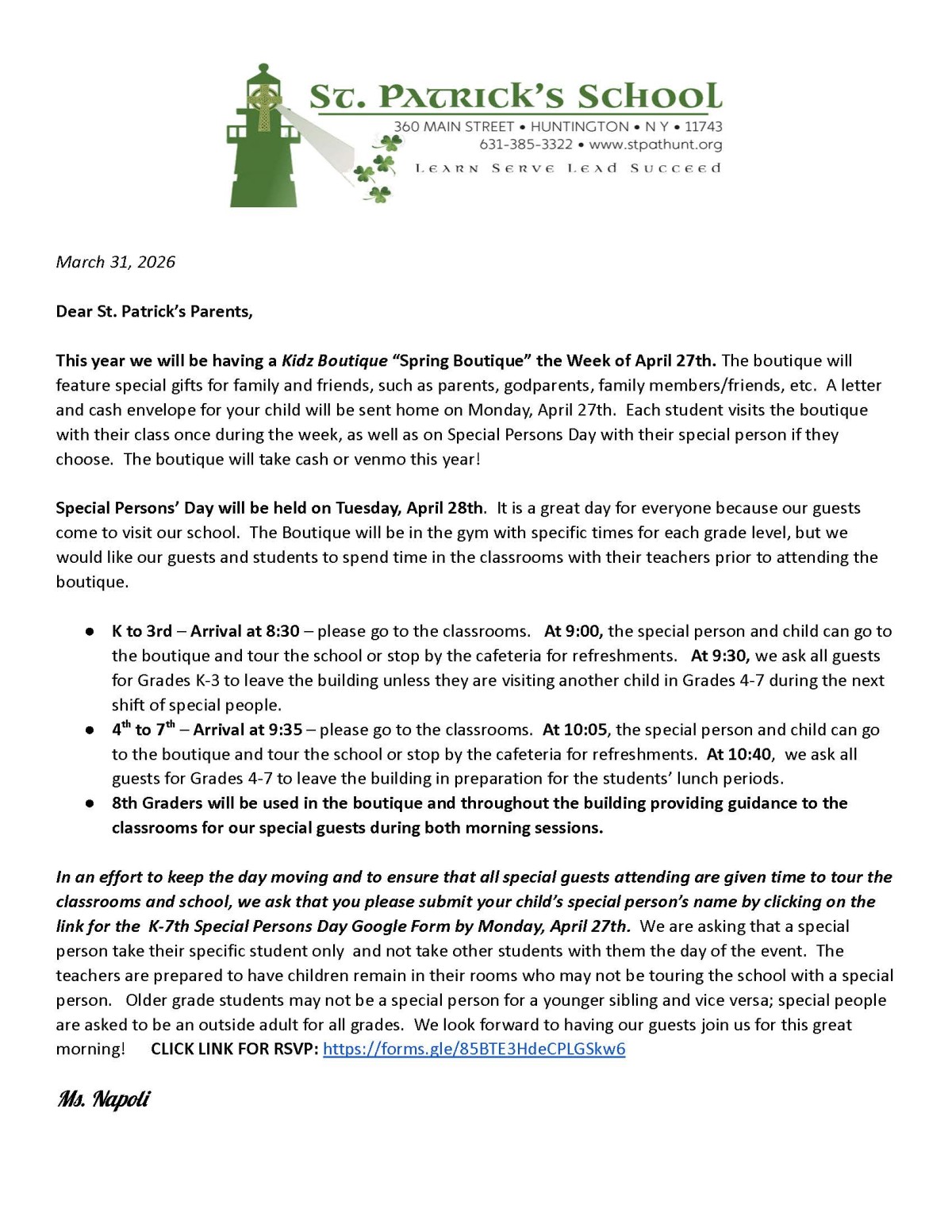 From the desk of Ms. Napoli: